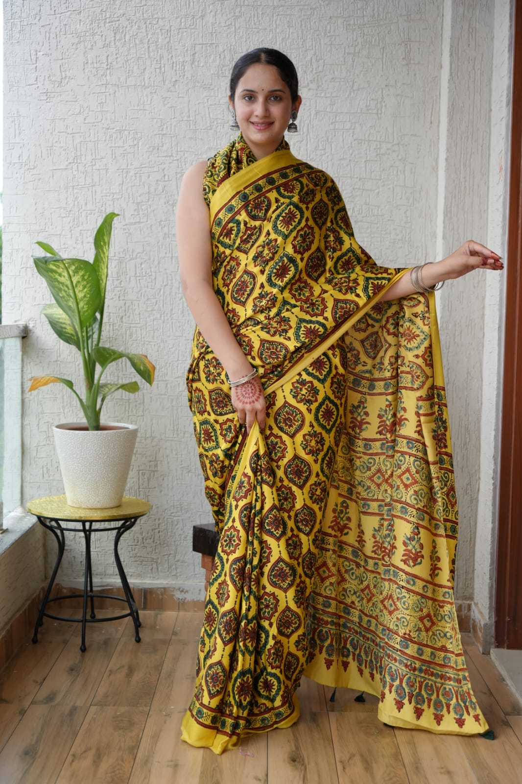 Pure Ajrakh Modal Silk Saree